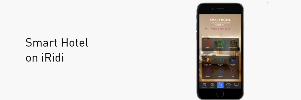 - By scanning the code, the guest can use their own smartphone to control the devices in their hotel room through the iRidi Pro interface.